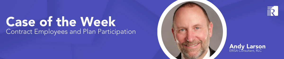 Welcome to the Retirement Learning Center’s (RLC’s) Case of the Week. Our ERISA consultants regularly receive calls from financial advisors on a broad array of technical topics related to IRAs, qualified retirement plans and other types of retirement savings and income plans, including nonqualified plans, stock options, Social Security and Medicare. This is where we highlight the most relevant topics affecting your business. A recent call with a financial advisor in South Carolina] is representative of a common question on covering contract employees in a 401(k) plan